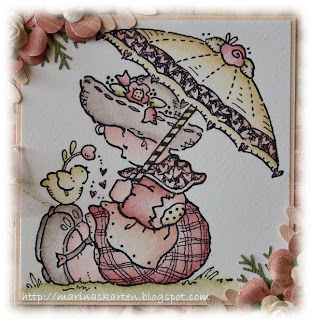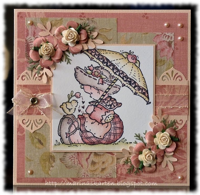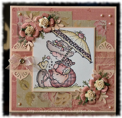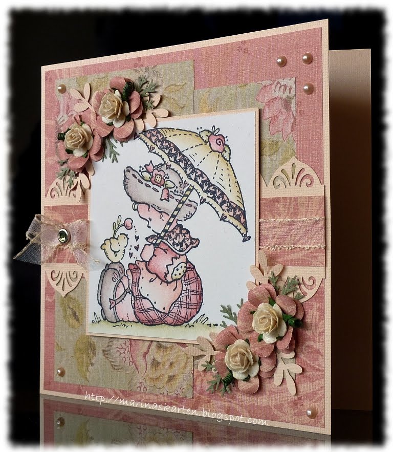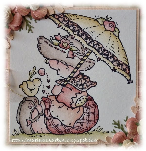 The card I want to show you today is, again made with one of my Penny Black stamps that have fallen into oblivion long ago: O (