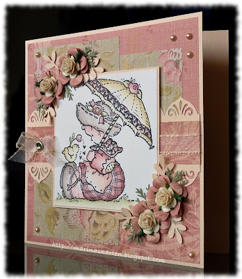 finished I have decorated with a few roses, pearls and an organza ribbon, from which I once again tied a loop, and this was fixed with a Rhinestone Brad from the map.
