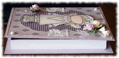 I have decorated with flowers and self-adhesive Halbperlchen of Wild Orchid Crafts, lace, twigs, which are made with a punch from Martha Stewart, and a flourish, I have been dancing with Creatables. Distressed