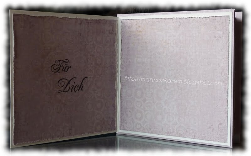 The design paper is stamped by My Mind's Eye and at the edges and corners with stamps from the stamp plate Vintage Garden by Stempelglede and Milled Lavender and edited with my paper distress.