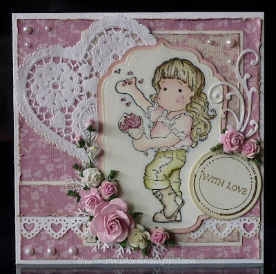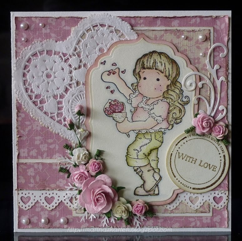 "With Love" is a clear stamp of Kanban, the I in a circle temple have set from Basic Grey and then punched with round spelli.