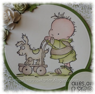 The text is from Betty's Creations and also punched with spelli, where I have chosen in the girl a wavy circle card for deposit.